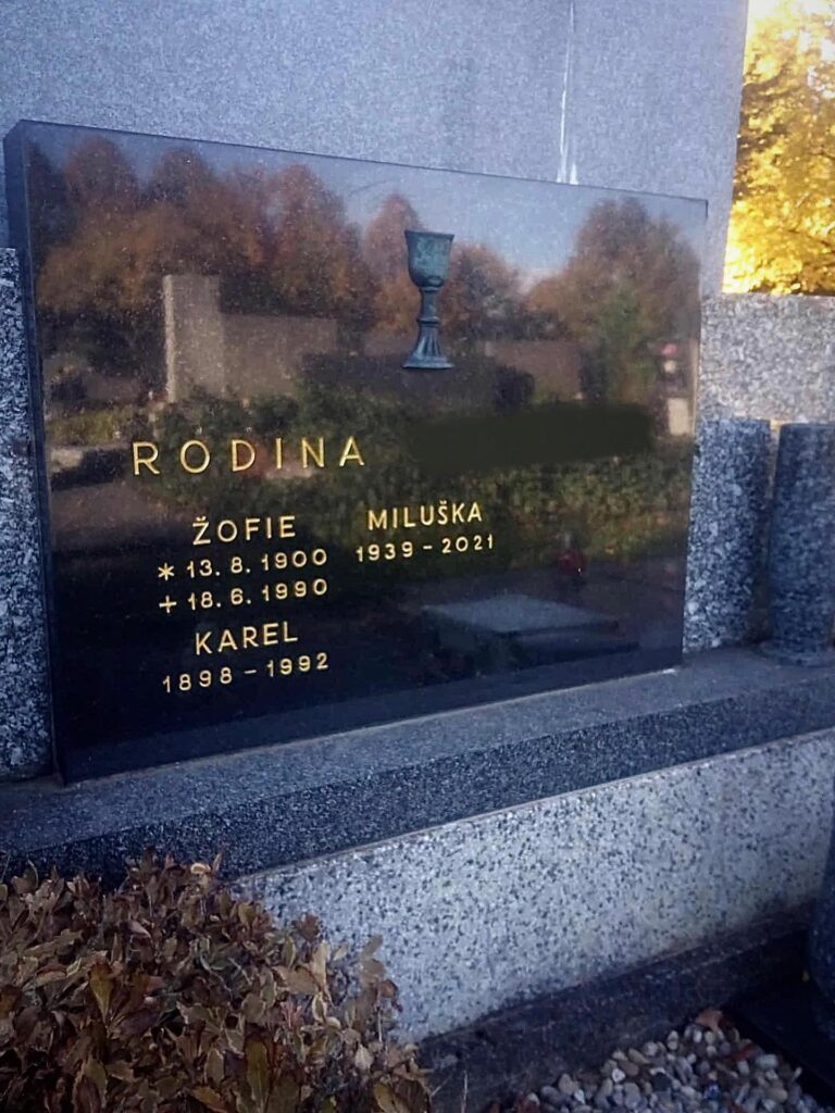 Jedná se o žulové krytí v odstínu Tarn a původní stav deskoviny není ničím výjimečný, zvlášť pokud je v blízkosti hrobu vzrostlá zeleň… ![]()