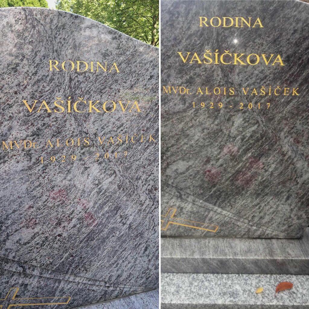 : Přípis na pomník, vyhotovení fotokeramiky, obnova stávajícího textu zlacením – dle přání zákazníka.